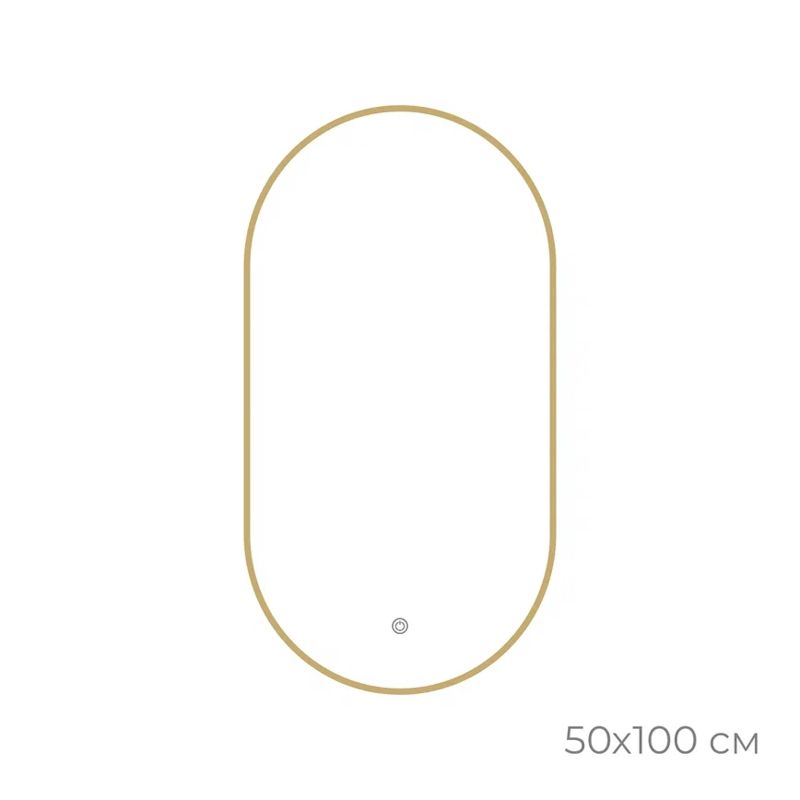 Зеркало с подсветкой LED овальное 50х100 см золото-сатин FX-3100G. Размер/Диаметр, см: 50х100. Материал: стекло, аллюминий. Особенности: контурная LED подсветка, сенсорное управление c диммером; расстояние между креплениями: 15,5 см. Упаковка изделия: картонный короб. Способ установки: настенный.