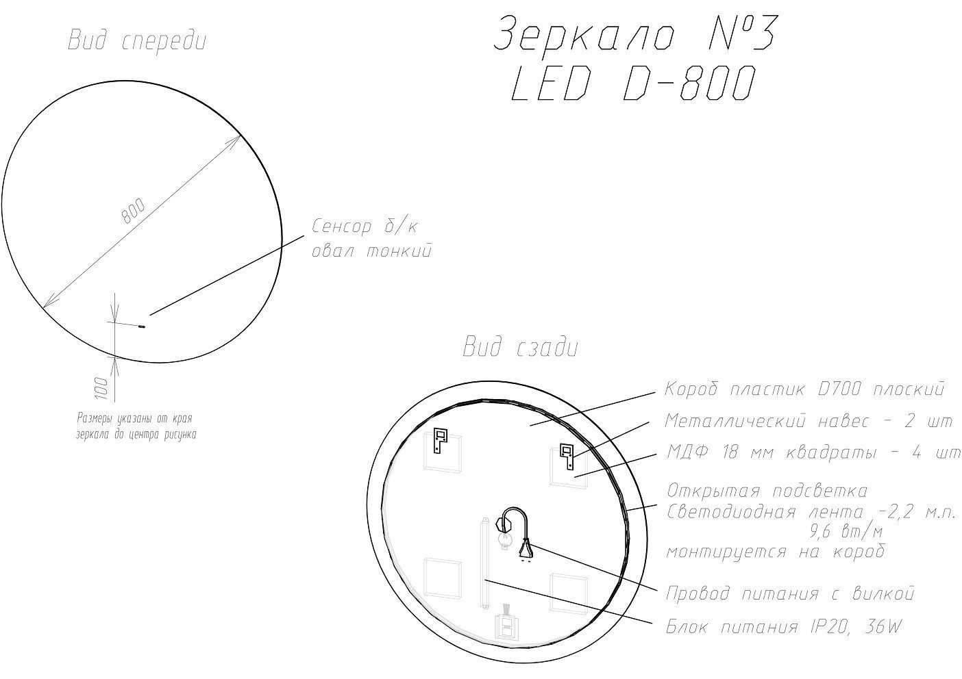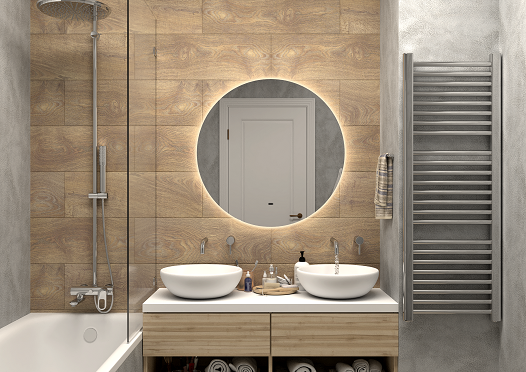 Корпус из УПС-пластика ,ореольная подсветка,бесконтактный сенсор;Подсветка "теплого" типа