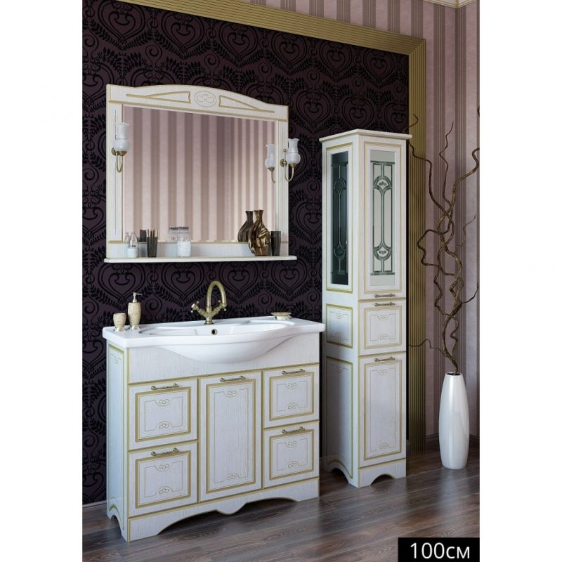 Зеркало Sanflor Адель 100 Н0000000668 Белое Патина золото с полкой и светильниками.