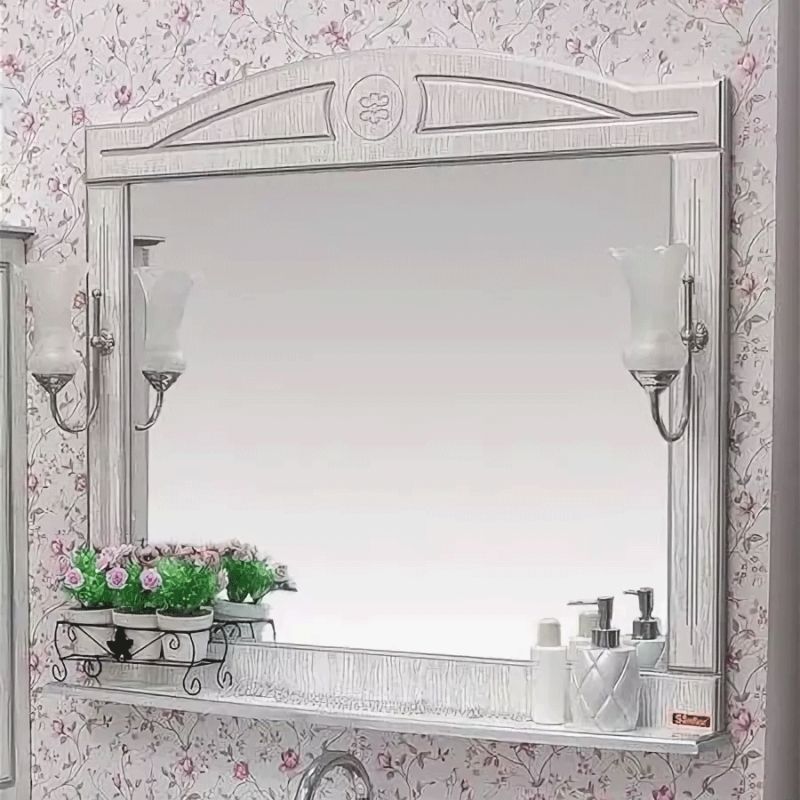 Зеркало Sanflor Адель 100 Н0000000748 Белое Патина серебро с полкой и светильниками.