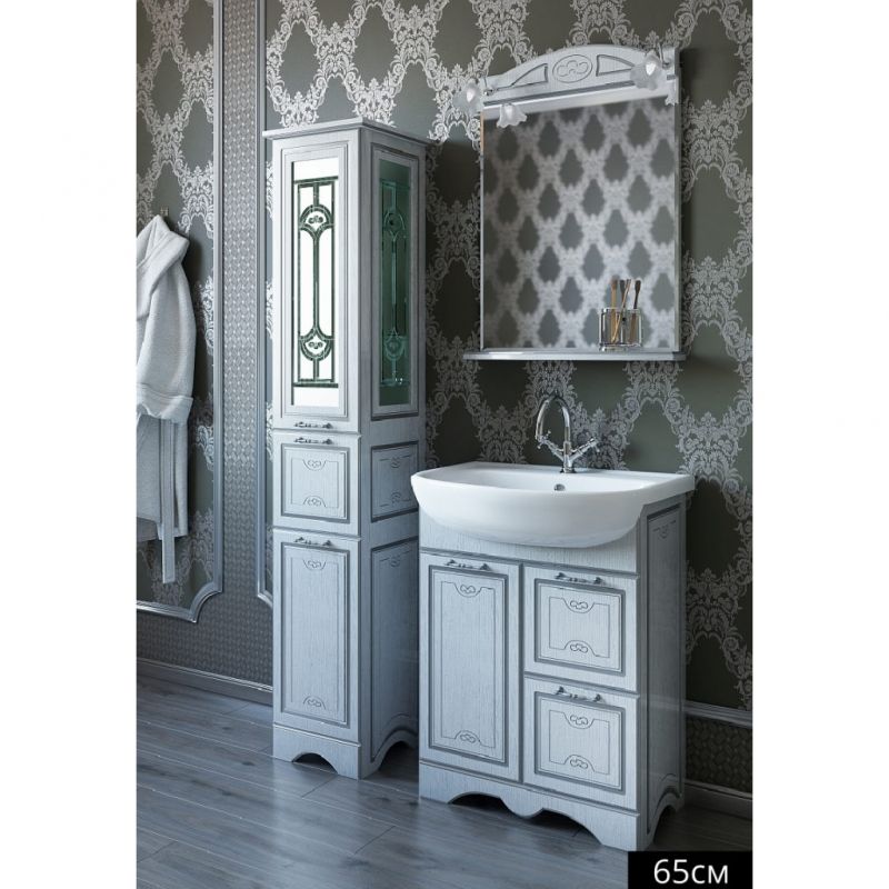 Зеркало Sanflor Адель 65 Н0000000553 подвесное, в раме белого цвета с золотым патинированием, с открытой нижней полкой, с двумя светильниками в виде цветков.