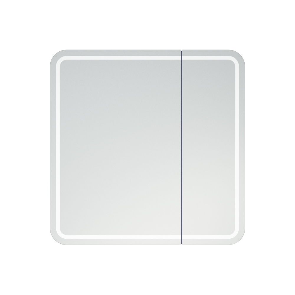 Зеркало имеет интересный эргономичный дизайн - скругления на углах и слегка "выпуклая" поверхность зеркального полотна делают этот вместительный зеркальный шкаф визуально более изящным. На каждой двери есть область, подсвеченная светодиодной лентой. За дверьми расположены по 2 стеклянные полки. Зеркальный шкф является универсальным - наличие внутри 4-х L-образных подвесов позволяет подвесить его, как будет удобнее - большой дверью направо или налево. За маленькой дверью расположена розетка.