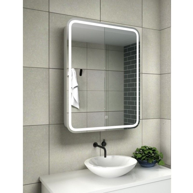 Зеркало-шкаф Анжелика для ванной комнаты с LED подсветкой и сенсорным выключателем.