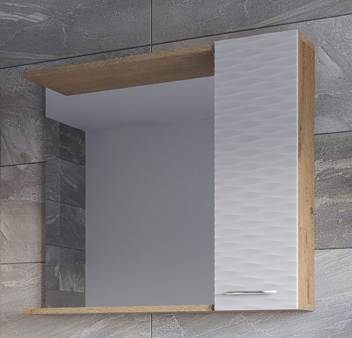 В модели "Ундина" теплый цвет "бунратти" гармонично обрамляет волнообразные 3D - фасады матового белого цвета, что в итоге создает ощущение природной плавности, натуральной естественности и общей привлекательности внешнего вида. Функциональность модели "Ундина" обеспечивается разнообразными закрытыми и открытыми полочками, глубокой раковиной, компактной подвесной конструкцией и наличием доводчиков.