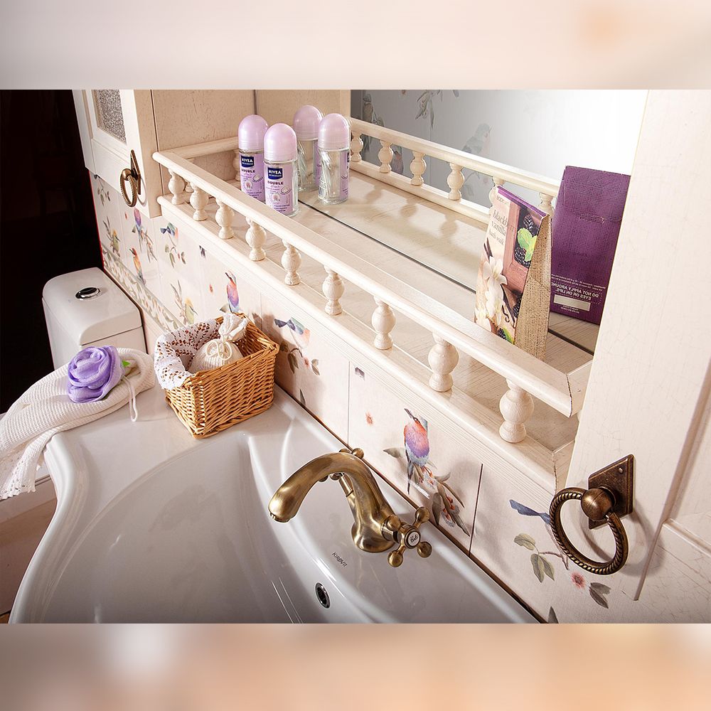Комплект мебели Бриклаер КАНТРИ состоит из: Зеркало КАНТРИ 85 см, бежевый дуб прованс, Шкаф навесной Бриклаер КАНТРИ 30 см, бежевый дуб прованс, Балюстрада Бриклаер КАНТРИ 85 см, бежевый дуб прованс.