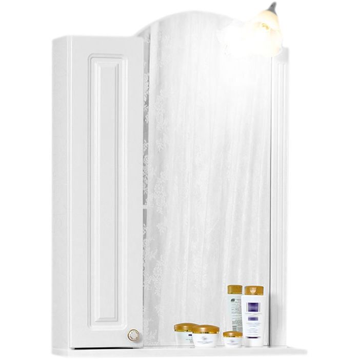 - Зеркало со шкафом Бриклаер Анна 60 с открытой нижней полкой, со светильником в форме цветка. Для использования в ванных комнатах с повышенной влажностью.