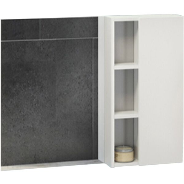 - Зеркальное высококачественное полотно с амальгамой на основе серебра. Створка мебельного элемента оснащена петлями с плавным закрыванием. За дверцей одна горизонтальная полка. Фасад покрыт белой глянцевой эмалью.