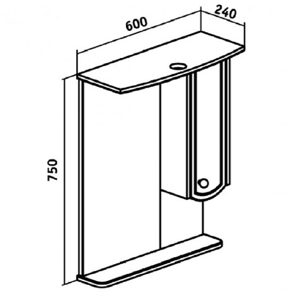 - Справа от зеркала шкафчик с распашным фасадом и двумя внутренними полками.