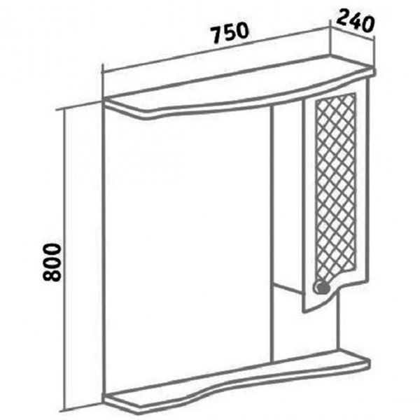 - Справа от зеркала шкафчик с распашной дверцей и одной внутренней полкой.