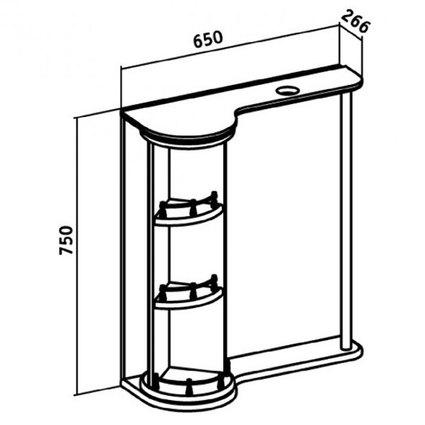 - Слева от зеркала три открытые полочки с декоративными рейлингами на крутящемся основании.