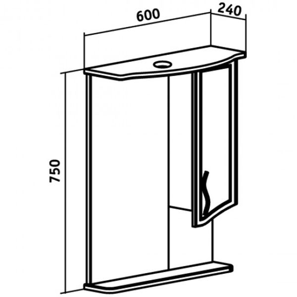 - Справа от зеркала шкафчик с распашным фасадом и одной внутренней полкой.