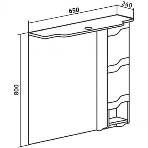 - Справа от зеркала шкафчик с распашной дверцей и одной внутренней полкой.