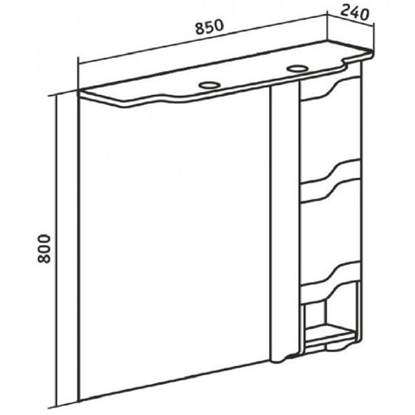 - Справа от зеркала шкафчик с распашной дверцей и одной внутренней полкой.