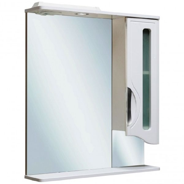 - Справа от зеркала шкафчик с распашной дверцей со стеклянной вставкой и одной внутренней полкой.