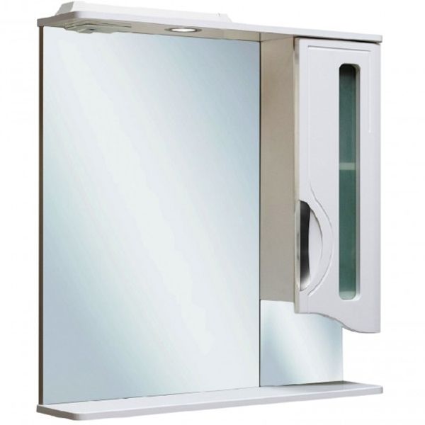 - Справа от зеркала шкафчик с распашной дверцей со стеклянной вставкой и одной внутренней полкой.
