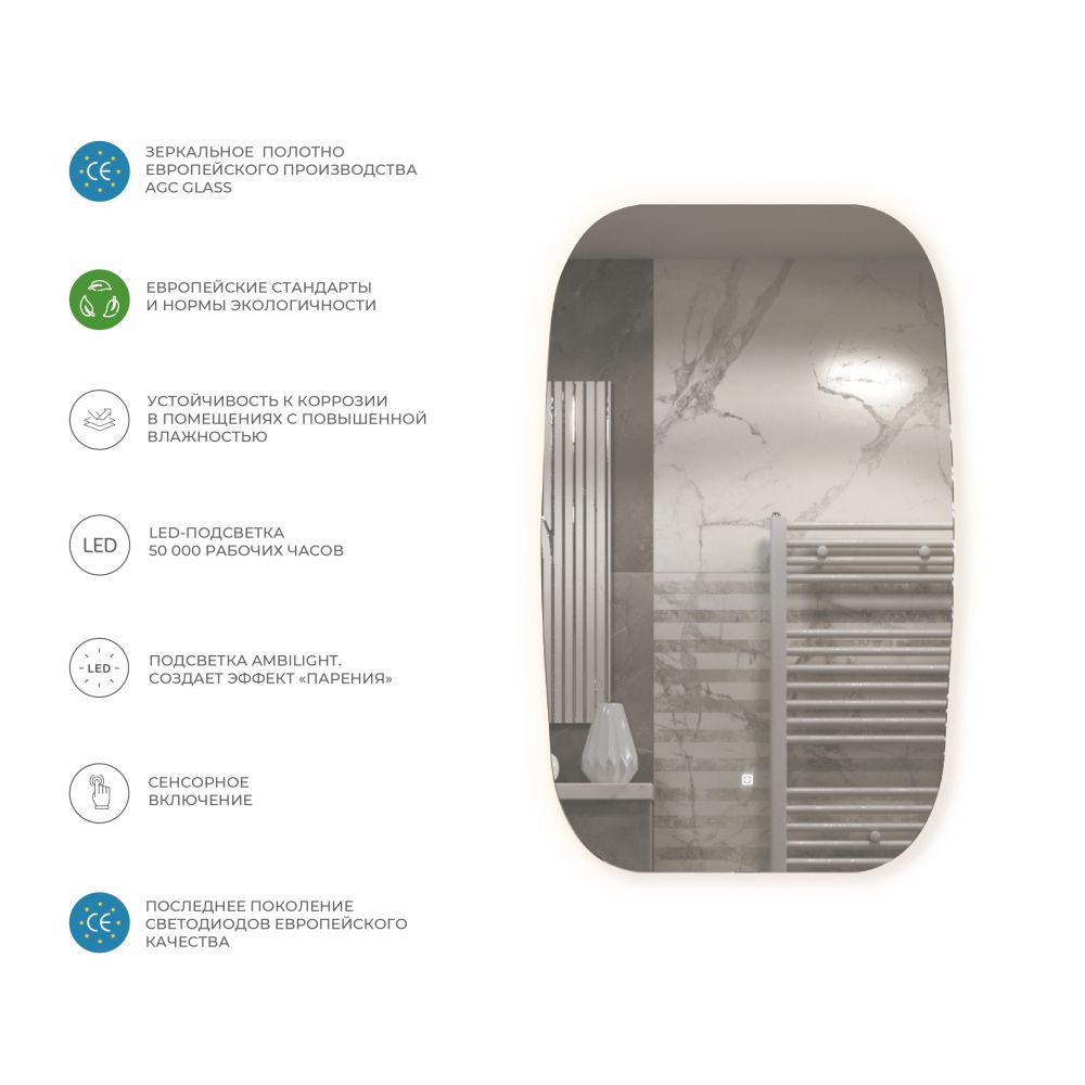 LED-зеркало: с подсветкой; с сенсорным управлением,